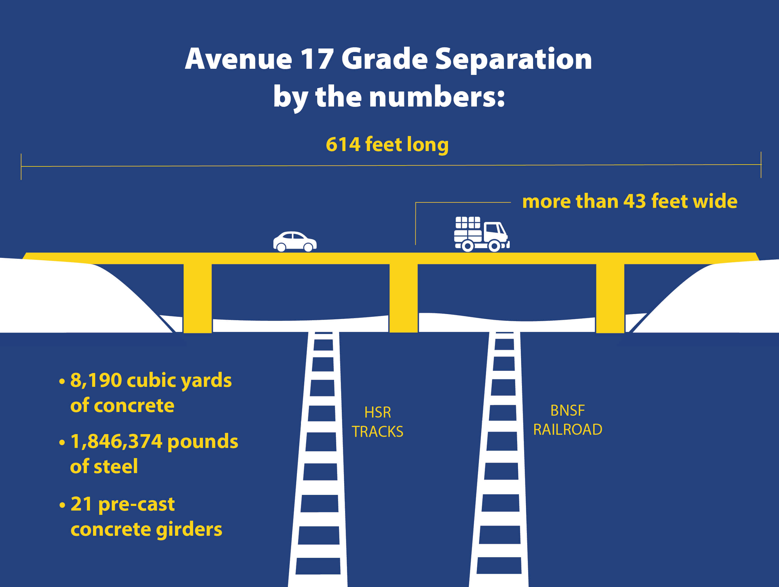| NHỮNG GÌ BẠN CẦN BIẾT: Đường phân cách mặt đất Đại lộ 17 tại Quận Madera đã hoàn thành và đưa vào sử dụng. Đây là công trình thứ tám được đưa vào sử dụng trong năm nay, sẽ cải thiện khả năng di chuyển bằng cách đưa phương tiện cơ giới và người đi bộ qua đường sắt cao tốc BNSF và các tuyến đường sắt cao tốc trong tương lai. |
