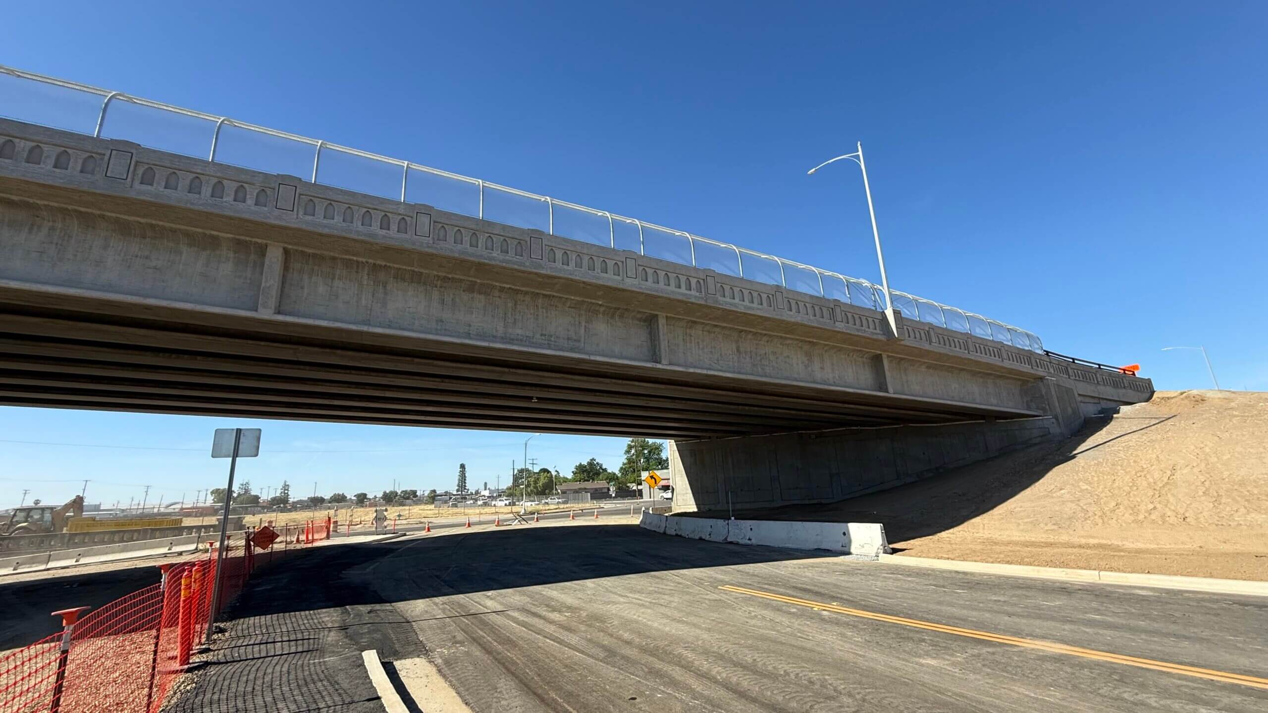 7月下旬には、フレズノ市当局と地元および州の指導者たちが、テューレア通り立体交差事業の完了を祝い、フレズノのヒストリック・チャイナタウンでテープカット式典を開催しました。この立体交差により、車両はユニオン・パシフィック鉄道と将来敷設される高速鉄道の線路下20フィート以上を走行できるようになりました。全長1,000フィート、幅60フィートを超える2車線道路となり、歩行者用レーンと自転車レーンが整備され、住民や自転車利用者の安全性向上と温室効果ガス排出量の削減に貢献します。この事業は、数十年にわたり分断されていたフレズノのチャイナタウンとダウンタウンを再び繋ぎ、アクセスとモビリティの向上、長期的な経済成長の促進、そして高速鉄道建設の基盤整備という点で、特に意義深いものです。 この構造の詳細については、こちらをご覧ください。.