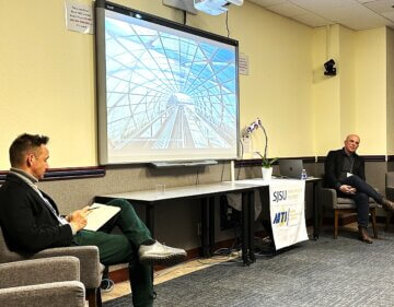 南カリフォルニアでは初めて、高校生のインターン生がグループにプレゼンテーションを行い、この夏、南カリフォルニア局の職員と共に働き、現在、鉄道博物館の展示室となっているレストラン「フィリップ・ザ・オリジナル」の改装工事に携わった経験を語りました。生徒たちはインターン生の経験を通して、この特別な機会についてより深く理解するとともに、計画、建設、そしてキャリア準備について職員に質問する機会を得ました。TCAPインターン生たちは、プロジェクトと学生たちの経験についてより深く学ぶことに興奮し、高速鉄道の未来への期待を語りました。