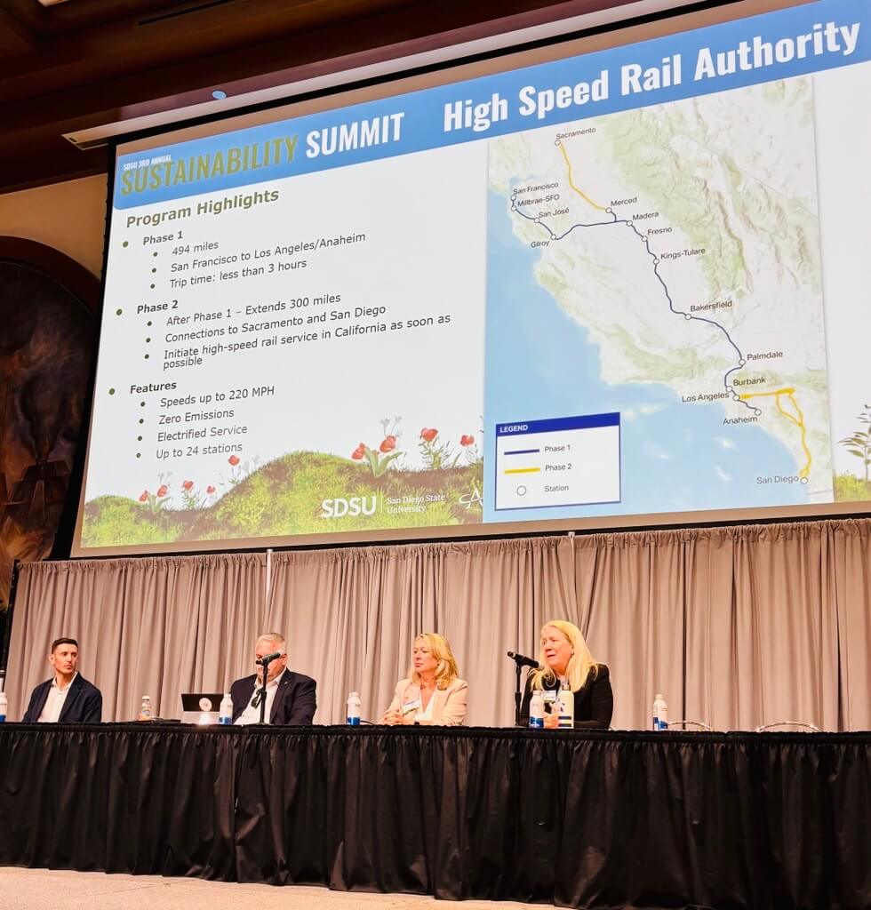5月、チョードリCEOはワシントンD.C.で開催された全米高速鉄道協会(USHRA)年次総会に出席し、全国的な注目を集めました。「南西部におけるアメリカ初の真の高速鉄道システムの推進」と題したプレゼンテーションでは、プログラム目標の進捗状況、そしてブライトライン・ウエスト社およびハイ・デザート・ジョイント・パワーズ・コリドー社との合意について説明しました。この合意は、当社の高速鉄道システムと同社の高速鉄道システムを接続することで、全米初の州間高速鉄道網を構築するものです。