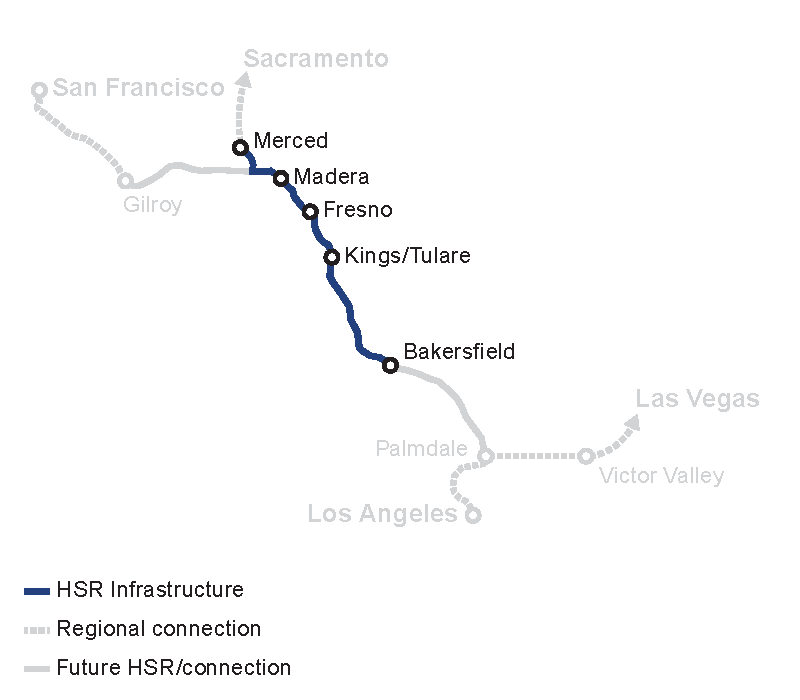 - ਮਰਸਡ ਤੋਂ ਬੇਕਰਸਫੀਲਡ ਹਿੱਸੇ ਦੀ ਪ੍ਰਗਤੀ, ਜੋ ਕਿ ਨਿਰਮਾਣ ਅਧੀਨ ਹੈ ਅਤੇ ਉੱਨਤ ਡਿਜ਼ਾਈਨ ਹੈ।