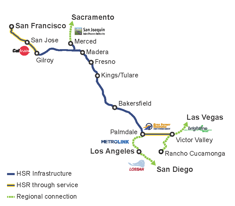 ਇੱਕ ਵਾਰ ਪੂਰਾ ਹੋਣ 'ਤੇ, ਹਾਈ-ਸਪੀਡ ਰੇਲ ਕੈਲੀਫੋਰਨੀਆ ਵਿੱਚ ਆਵਾਜਾਈ ਵਿੱਚ ਕ੍ਰਾਂਤੀ ਲਿਆਵੇਗੀ, ਜਿਸ ਨਾਲ ਸਵਾਰੀਆਂ ਸੈਨ ਫਰਾਂਸਿਸਕੋ ਤੋਂ ਲਾਸ ਏਂਜਲਸ ਖੇਤਰ ਅਤੇ ਇਸ ਤੋਂ ਅੱਗੇ ਬਿਨਾਂ ਕਿਸੇ ਰੁਕਾਵਟ ਦੇ ਯਾਤਰਾ ਕਰ ਸਕਣਗੀਆਂ। ਅਥਾਰਟੀ ਨੇ ਕੈਲੀਫੋਰਨੀਆ ਵਿੱਚ ਹਾਈ-ਸਪੀਡ ਰੇਲ ਸੇਵਾ ਨੂੰ ਜਲਦੀ ਤੋਂ ਜਲਦੀ ਲਿਆਉਣ ਲਈ ਕਈ ਸੰਭਾਵੀ ਦ੍ਰਿਸ਼ ਪੇਸ਼ ਕੀਤੇ ਹਨ।